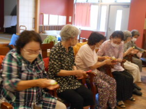 デイサービスでは14時半頃から皆さん参加でレクレーションを行います。