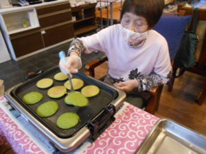 抹茶クリームどら焼き!(キャー素敵!)を皆で焼き焼きしました~(^O^)