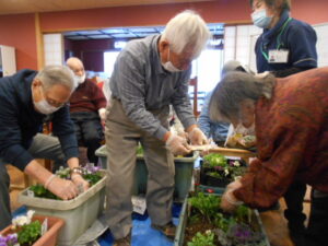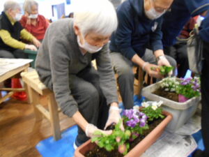 手慣れた様子で植えられる方、お互いに協力しあいながら