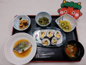 夕食には行事食が提供され皆さん恵方巻を美味しそうに